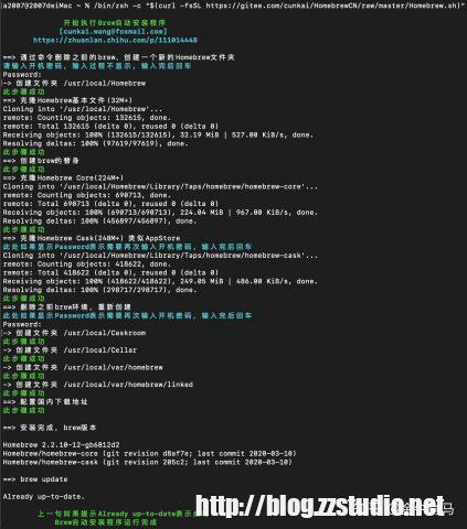 先运行下面命令看是否能出来Homebrew的版本号(结果看倒数3句)